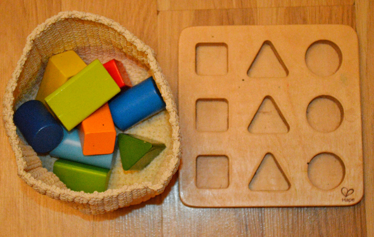 И ещё одна сортировка на геометрию и размер. Повторюсь: в самостоятельной игре важно не вмешиваться без просьбы ребёнка, не поправлять. Малыш сам должен проработать все возможные варианты в игре, а уж что там большое-среднее-маленькое , как в данной игре, играет более чем второстепенную роль.