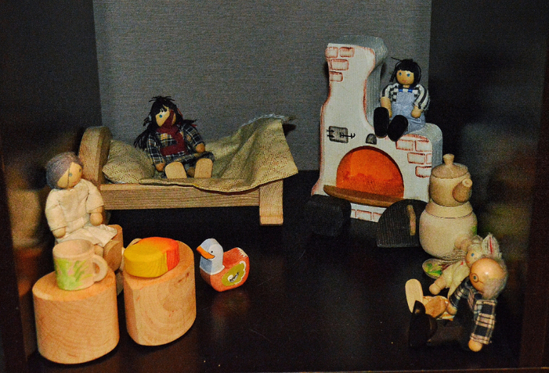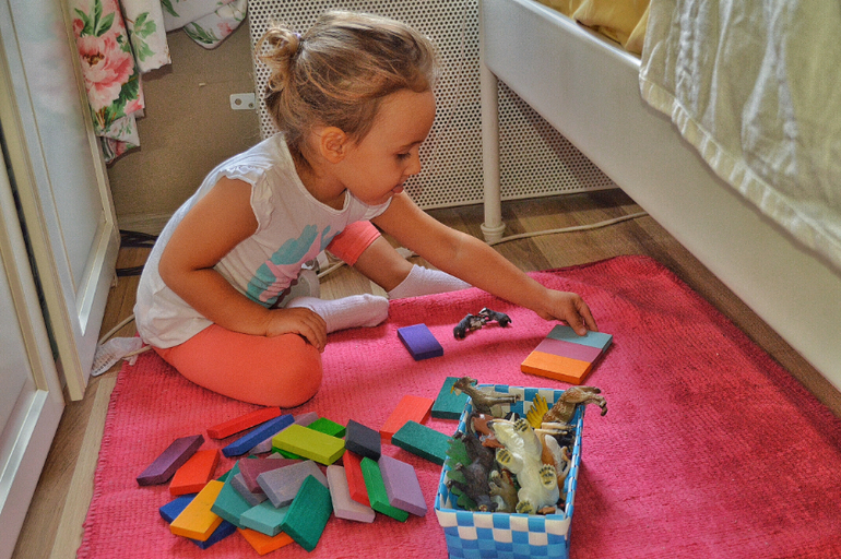 Деревяшки тоже периодически убираю-достаю, иначе все надоедает, и она не подходит. А обновлённые экспозиции))) чудным образом побуждают её к новым ролевым играм. Ну что тут говорить, она то строила, то кормила, то спать укладывала.