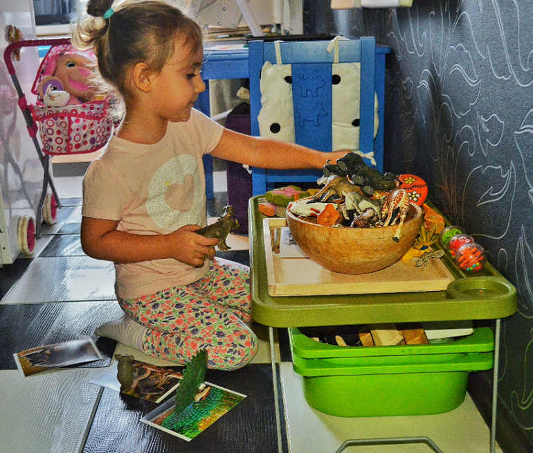 Вот такие самостоятельные игры у нас вышли на неделе. Очень многое остаётся за кадром. Дэрья, конечно, играет и с тем, что я не выставляю для игры, а некоторые из предложенных мной на столиках игр, её не заинтересовывают вовсе. Но в целом, у нас обеих уже сложилась определенная схема игр совместных и игр самостоятельных с предложенным материалом. Игра осмысленная без моего участия все больше и больше входит в Дашину жизнь. Я вижу, что ей интересно изучать, проговаривать, разыгрывать сценки из книг ,и мне это безумно нравится.