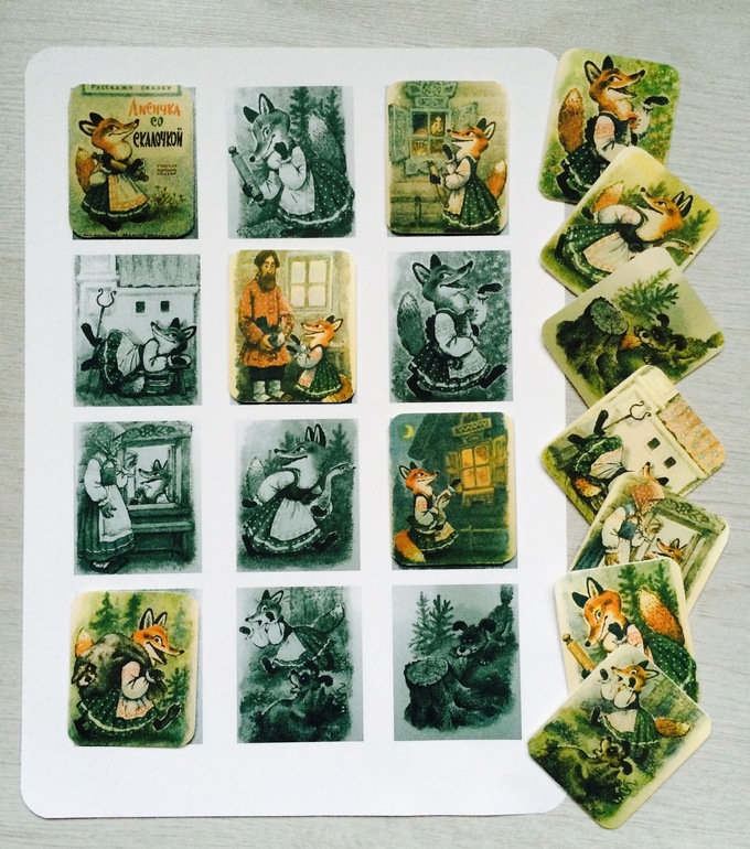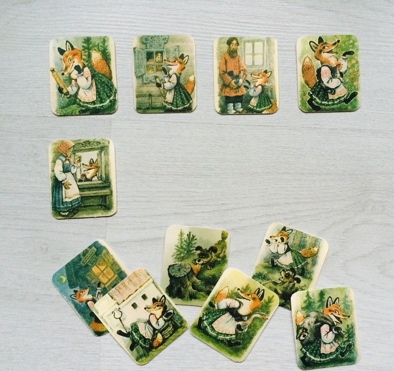 И самая, наверное, полезная игра - это рассказывать сказку вместе с малышом, одновременно выкладывая картинки в правильной последовательности. Или попросить малыша самого рассказать вам сказку. А можно намеренно сделать ошибки в последовательности и попросить малыша найти неточности.