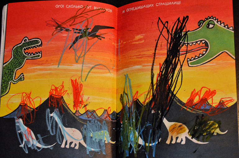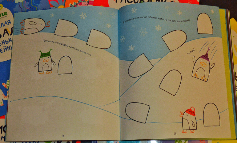 У нас практически нет просто раскрасок. Все тетради подбираю лишь по одному принципу: дофантазировать, дорисовать, додумать.