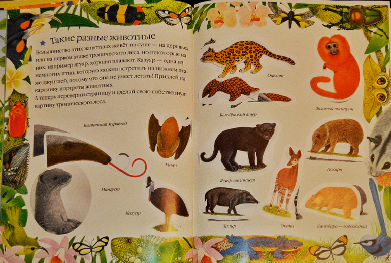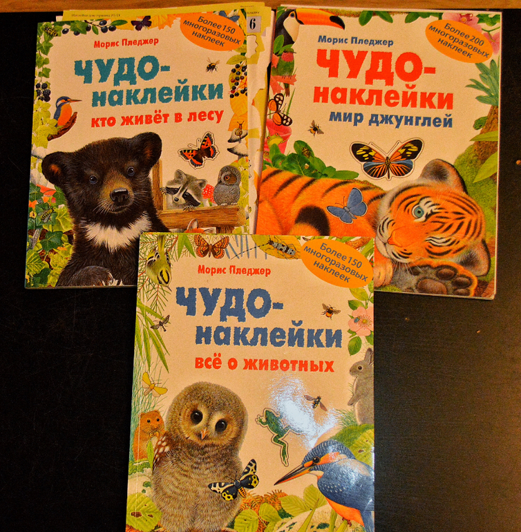 Эта серия очень познавательных тетрадей. В них собрано множество фактов о насекомых, птицах, млекопитающих. Наклейки не многоразовые, но мы пересматриваем уже наклеенные книги просто для расширения кругозора. Удивительно, что многие факты Даша помнит. Видимо мелкая моторика вкупе с чтением даёт лучший результат.