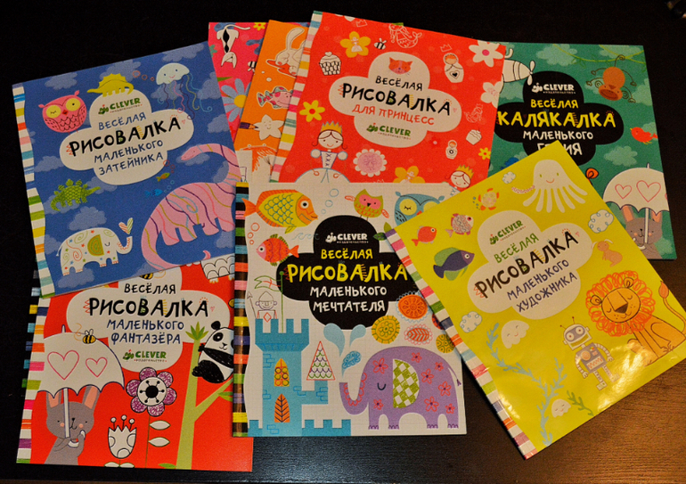 1. ЧУдная серия от Клевера. В сети Фикс Прайс можно найти целую коллекцию тоненьких книжечек. Обычно я выдираю из них по листу и выкладываю на столики для самостоятельной работы. По одному листу на раз. И пару-тройку пастельных карандашей. Другими Даша не рисует.