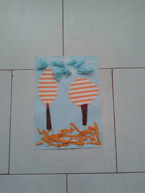А вот пример наших любимых коллажей (я очень ценю этот вид творчества: ребенок надолго занят, моторика развивается):