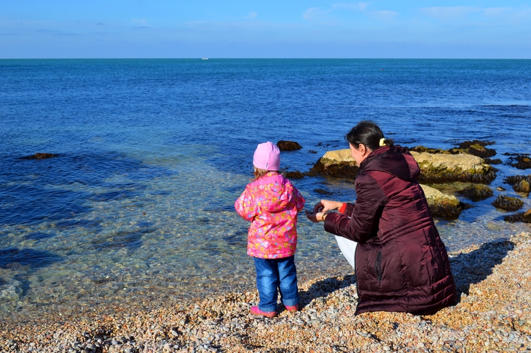 А еще ходим на море! Как же там сейчас чудесно! Тишина, прозрачная вода с легкой рябью на поверхности от ветерка. Воздух, которым, кажется, никак не можешь надышаться. Ну и камешки) которые так весело бросать с берега - это Катюшино любимое занятие)))