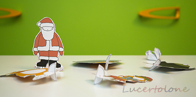 Две картинки: труба и нижняя часть тела Санты. Склеиваем их между собой, внизу - трубочку. Крутим быстро-быстро, получается Санта, полезающий в трубу ))