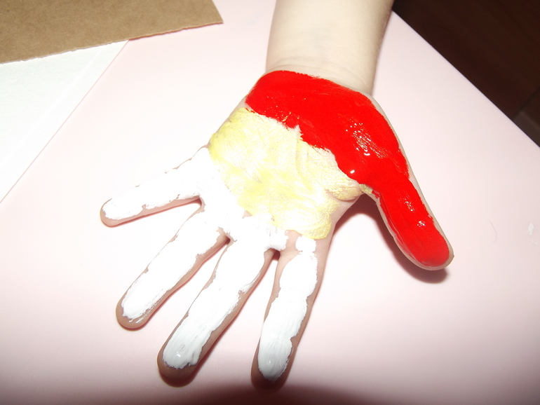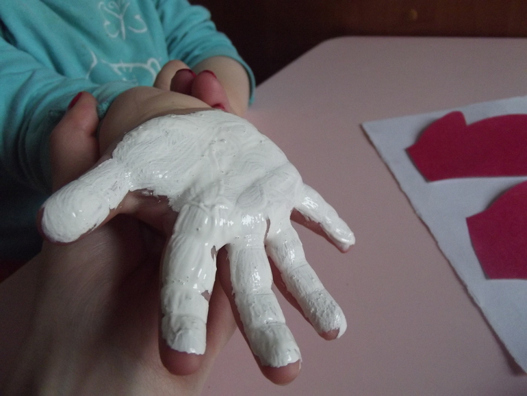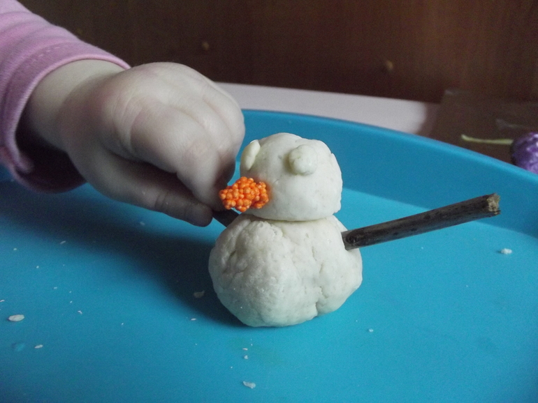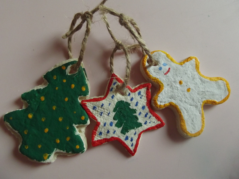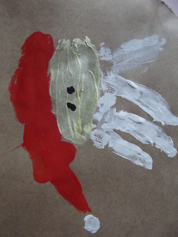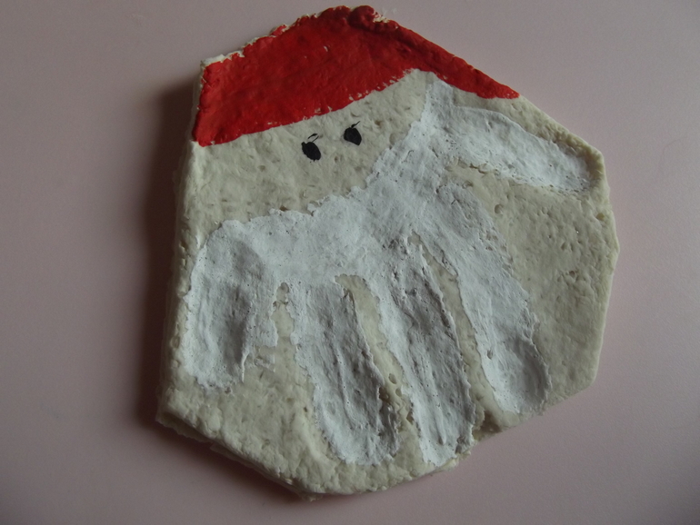 Из соленого теста сделали отпечаток " Дед Мороз ".