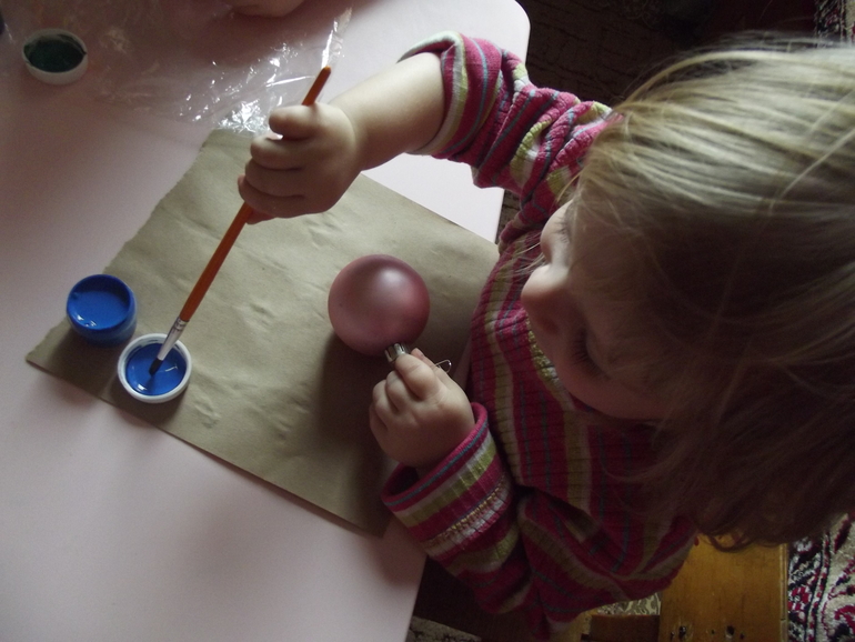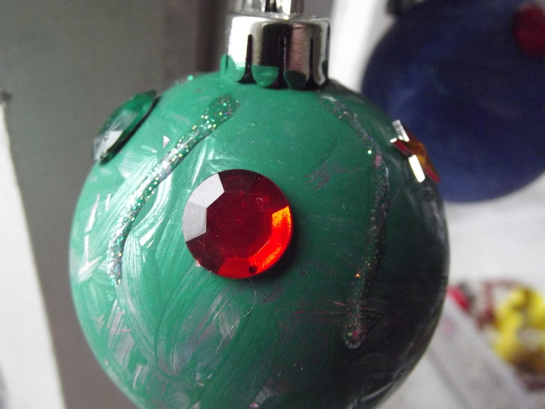 Первое с чего мы начали последнюю неделю ноября была - роспись шаров . Обычных однотонных шаров из Фикс прайса.Рисовали гуашь + клей ПВА . Украшали стразами .