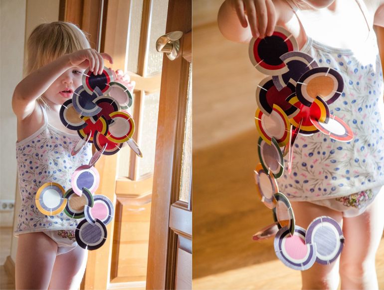 А еще мне понравилось, как из таких же кружков, как у меня, получился простейший конструктор (тут), просто сделав 4 надреза с разных сторон. По-моему, гениально!