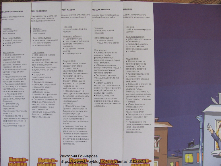 В комплект входят 60 заданий. И если в предыдущем комплекте 30*2 одинаковых заданий для мамы и ребенка, и суть была в том, что мама выполняет задание на своем листе, при этом комментируя свои действия, а малыш сам создает свой шедевр на своем листе. То в этом комплекте немного по-другому,вначале выполняем на мамином листе вместе с ребенком, а потом ребенок самостоятельно отрабатывает действия. И потом любуемся вместе и изучаем информацию на мамином листе.