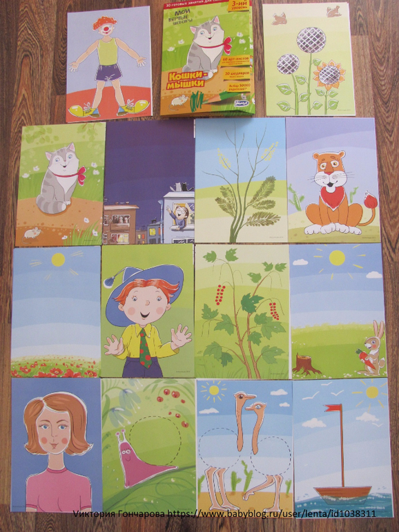Набор "Кошки-мышки" содержит 30 листов-заданий для ребенка + листы для мамы (что очень удобно)