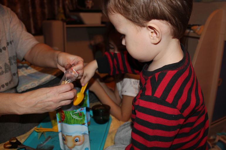 Вторым заданием мы сажали «волосы» дедушки Морозу и снеговику. Детям очень понравилось сажать семена и поливать, теперь ждем когда же вырастут наши волосы.