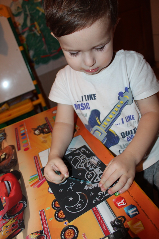 - Первое, что нашел в ящике это гравюру. Пробовали сделать мы ее впервые, раньше не покупала. Но особо что-то он ее не оценил, поскрябал 5 минут, и сказал, хватит. Так и должно быть.