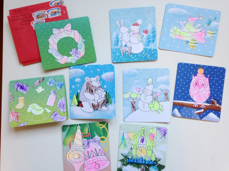 25 новогодних открыток-раскрасок от Clever