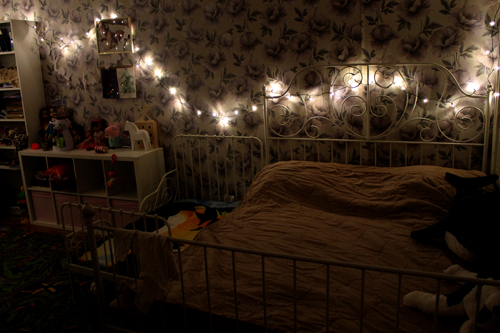 Украсили детскую в начале декабря,не удержались.Гирлянды Икеевские уличные,которые соединяютсядруг с другом: