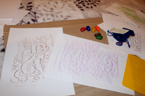 Так же,очень понравились мелки-камешки и трафареты.Тоже достала из носка на камине:
