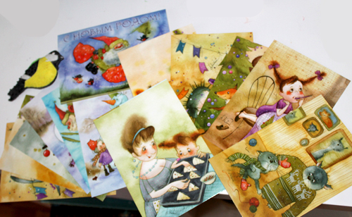 Подписали открытки.Кое-что уже послали по почте,что-то ждёт своего обладателя:
