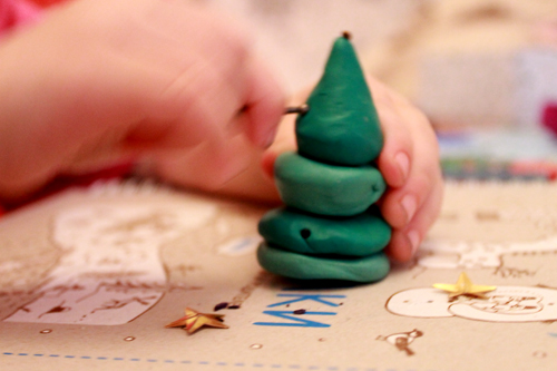 Украшаем то снежинки,то ёлочки из пластилина(левый верхний угол фото).А,вообще,я подумала,что для того,чтоб сделать задание-получить подарок Ханю ещё маленькая,успеет она ещё насладится рамками и правилами в жизни,поэтому она каждый день просто берет книжку/наклейки из камина,а потом после сна берет подарок.Без всяких "сделай-потом получи".Поэтому мы много играем в новенькие игрушечки(я закупала все заранее,в дневнике есть пост).Много резали: