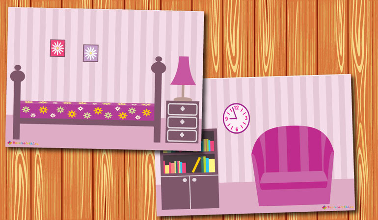 Вместе с малышом можно нарисовать еще множество таких уютных домашних уголков. А можно нарисовать пляж, где куколки будут загорать или лес, где будут искать грибочки и ягоды.