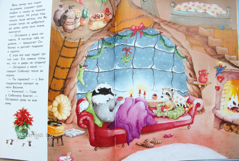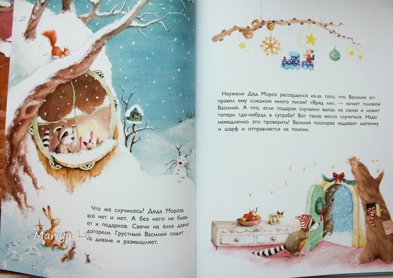 Стоит ли говорить,что покупала я книгу из-за иллюстраций? Они здесь такие нежные и легкие акварельки. Порой кажется,что можно услышать хруст снега от прикосновения пальцами по страницам.