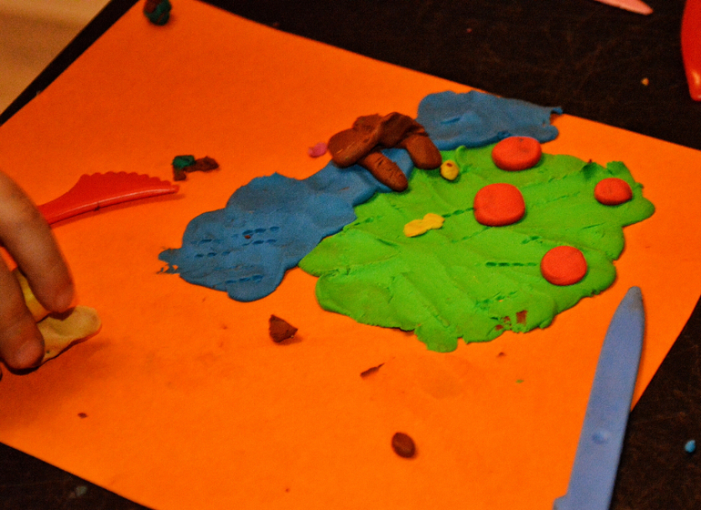 Потом долго просто лепили. Стараюсь показывать как лепить из целого куска. Мы делали бобра и птичку... Мало похожих))))на реальных, но для игры они более чем годны))