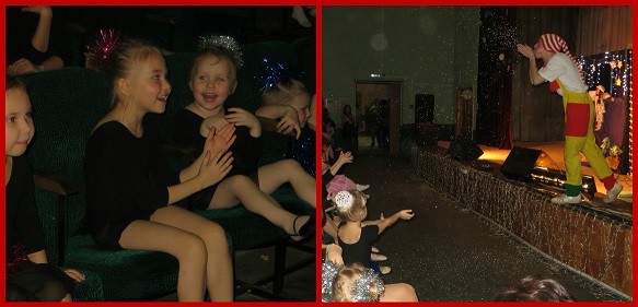 Специально для детей, которые занимаются гимнастикой, в ДК была организованна Елка. Сначала выступали сами, а потом представление: кукольный спектакль, Дед Мороз, подарки.