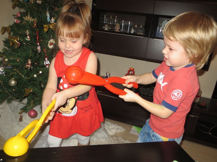 Принимали гостей. Я приготовила небольшую программу. Сначала настольный спектакль, а потом несколько заданий от злой Вьюги, которая не хотела отдавать подарки.