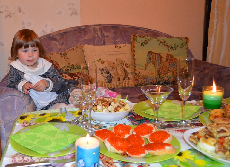А вот за праздничным столом, в ожидании)))