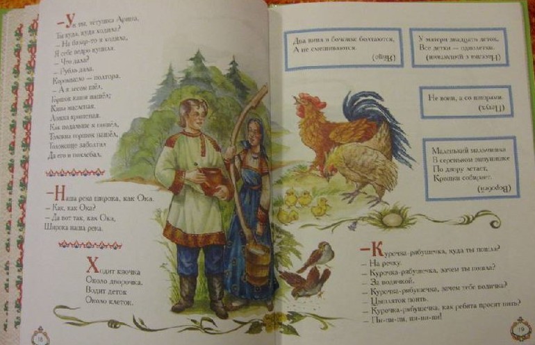 Эта книга - просто кладовая русского фольклора. Обязательно познакомьте малыша с устным творчеством давних времен. А загадки здесь встречаются практически на каждой страничке.