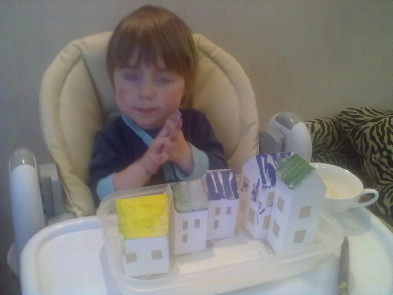 каждое утро в пакетике Матвей находил задание на текущий день. Как день заканчивался, я убирала елочку и передвигала сани на следующую елку. Так мы видели, сколько елок осталось проехать саням к Деду морозу