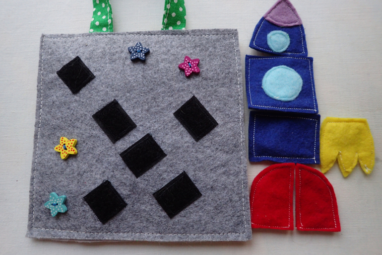 Развитие детей второго года жизниМягкий набор состоит из 6-ти планшетов и замечательной сумочки для хранения. Аппликацию и темы на планшетах можно выполнить согласно Вашим пожеланиям. Игрушка предназначена для детей от 1 года.