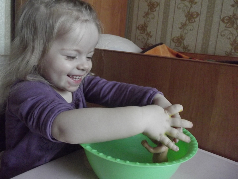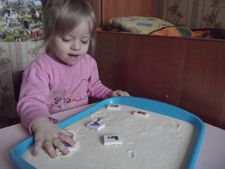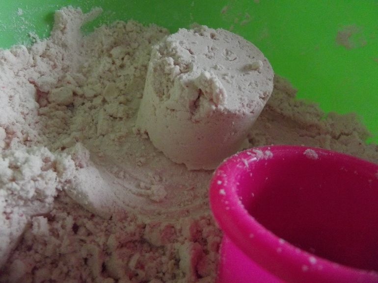 Песок из муки и детского масла.