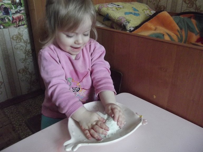Песок из соды и жидкого мыла.