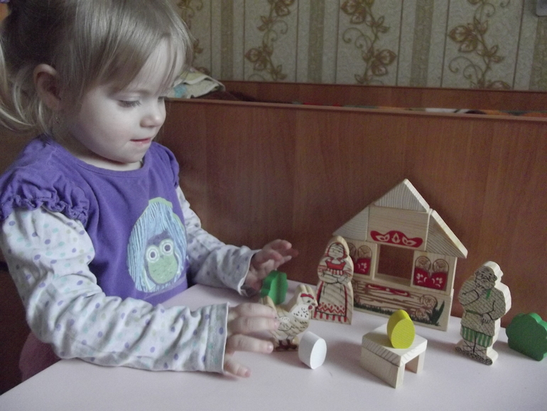 А еще мы по вечерам устраиваем театральные представления.Особенно Марусе нравится играть роль яйца в " Курочка Ряба " .