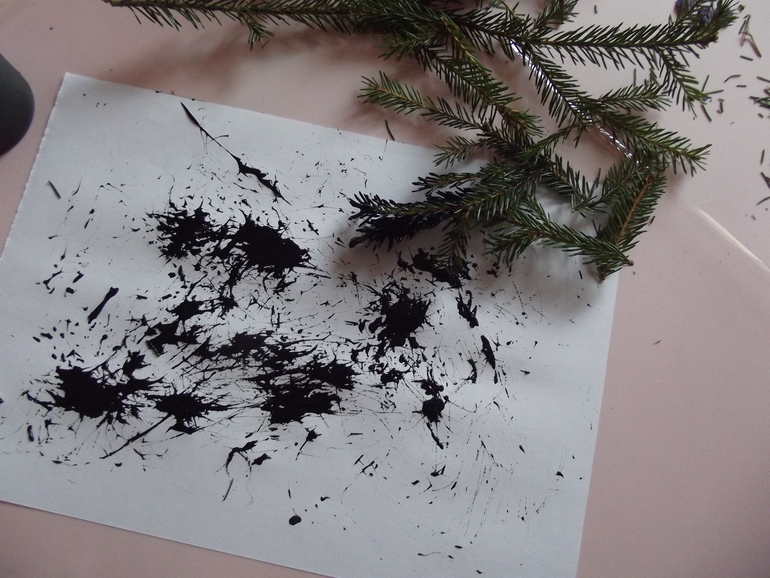 Еловыми ветками .
