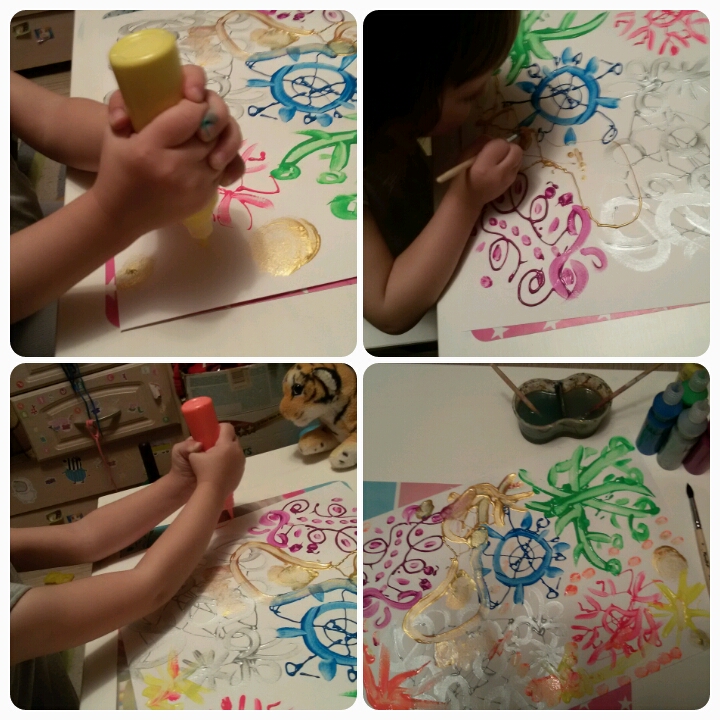 А здесь давили ( учились) краски прямо из тюбиков, кое-что растягивали потом кисточкой. Понравилось!!!!))))