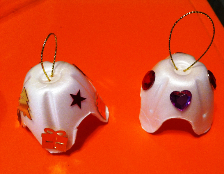 Я - очень запасливый человек, поэтому в моем "чулане" хранятся банки, упаковки, упаковочная мишура (кстати, кто знает, как ее применить, напишите, плиз, занимает много места), коробки из-под яиц. Вот, как раз, из коробки для яиц эти ячейки были вырезаны, фигурно.