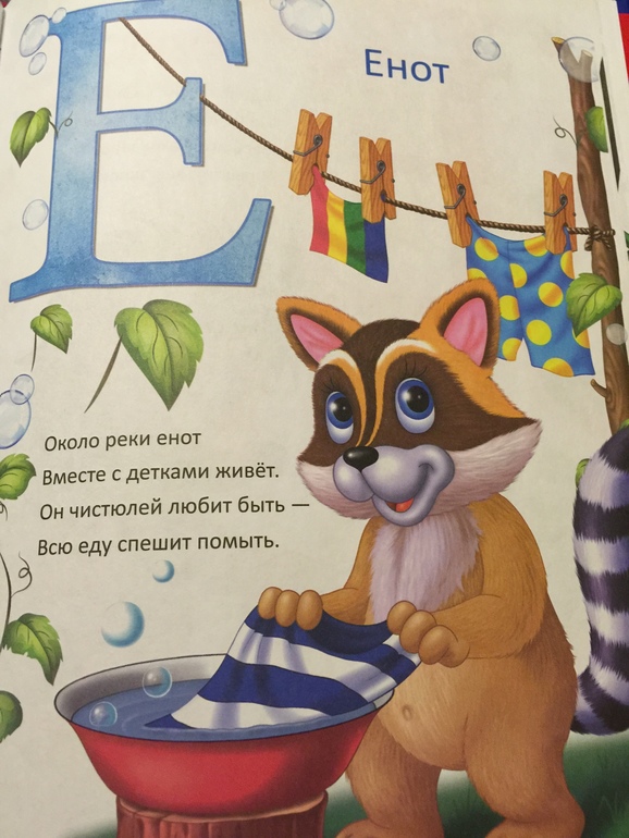 "Всю еду спешит помыть". Где здесь,простите еда? Трусы на прищепках? Это книга "Азбука в картинках" издательства АСТ,Бочарова
