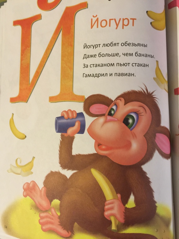 У меня самой взрыв мозга , вот я знакомлю дочку с миром, и ассоциации с Й какие могут быть?? Но не обезьяна, которая пьёт йогурт вместо бананов ,гамадрил и павиан.Зачем все усложнять маленькому ребёнку?