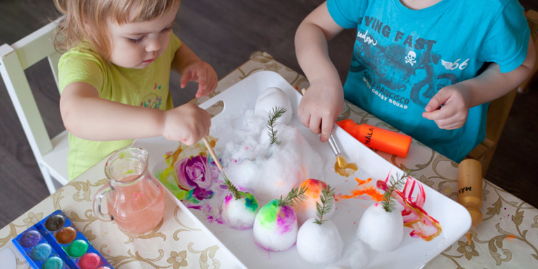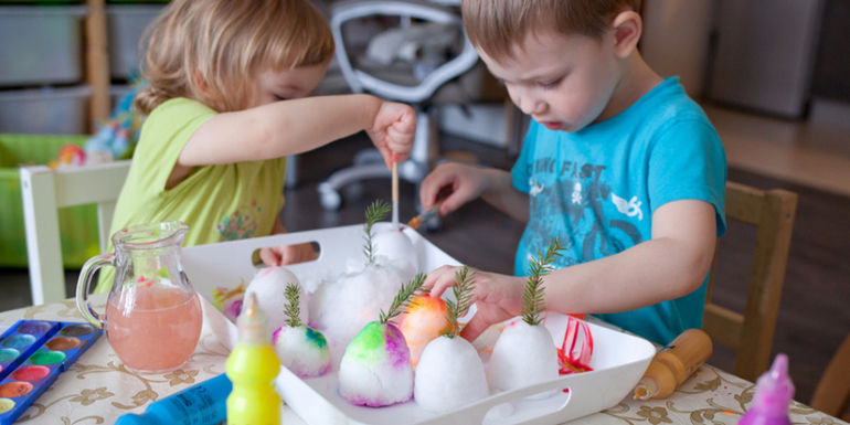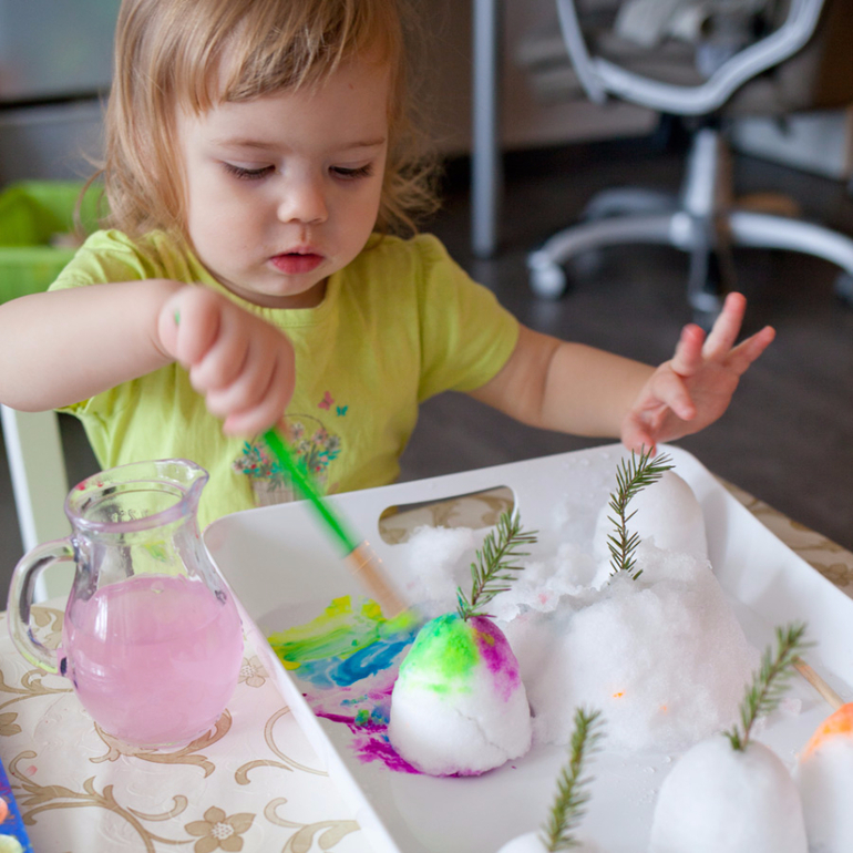 4) Собрали снег с окна, сделали форму полуяйца, и потом раскрашивали акварелью
