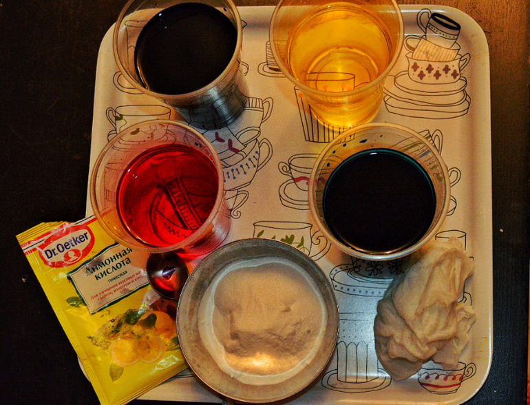 Наконец-то провели крутой опыт с лимонной кислотой, содой и красителями. Дэрья сначала осторожничала, потом втянулась, и я только успевала водичку менять. В общем, шипучка очень понравилась нам обеим. Можно исполнить в разных вариациях: в большой посуде растворять соду, по разным стаканчикам подкрашенным водичку с лимонной кислотой разлить, можно эту воду заморозить и топить тёплой водой с содой.