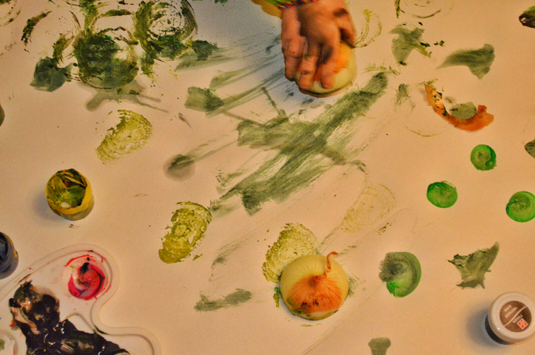 Популярные отпечатки негодными в еду овощами. Лук самый интересный)) отпечаток очень похож на древесный спил.