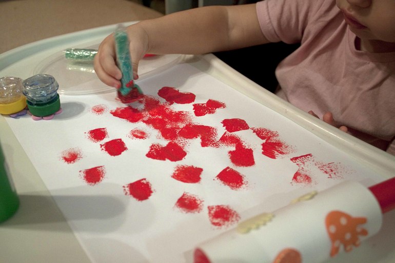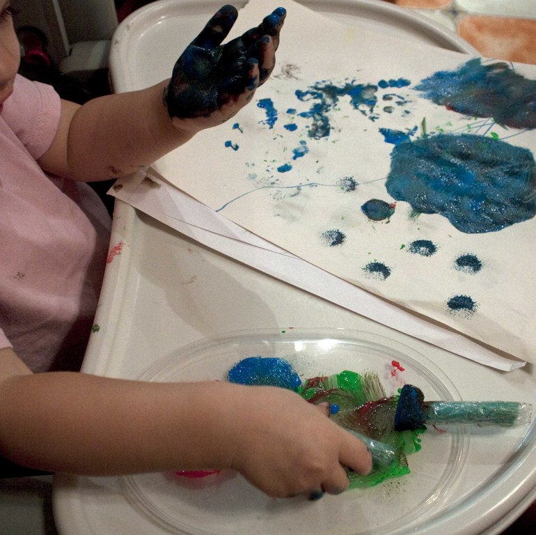 А так же оказалось очень удобно им наносить краску на ладонь....Чтобы потом попросить маму смыть