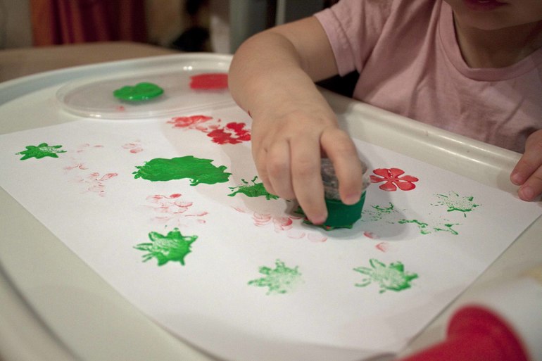 Художественно-эстетическое развитиеКак всегда, не имея достаточно времени на все, но большое желание сделать для ребенка что-то новое, увлекательное и развивающее, сделала штампы за 15 минут из того, что было дома.