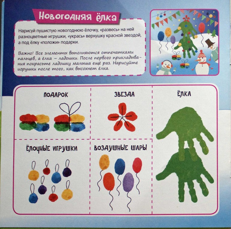 поэтапно изобразить предметы при помощи отпечатков пальцев и ладошек. Всего 12 страниц. На развороте картинка-фон, картинка- финальный вариант, подсказки для родителей. Серия очень большая и достаточно бюджетная. Мы использовали, как фон, для творческого полета фантазии. Все-таки,