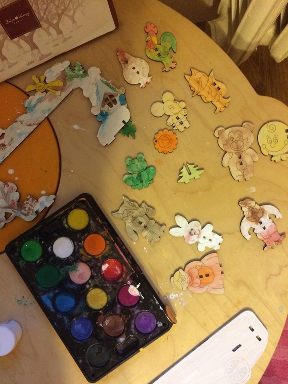 Ребенок нераскрашенными фигурками играть отказался, фигурки предварительно смачивала водой, чтобы легче ложилась акварель..С момента покупки игрушки прошло чуть меньше месяца и могу сказать, что это безусловный хит! Играет сама, рассказывает сказки игрушкам, коту, бабушкам и другим гостям, иногда устает..просит меня подменить ее))