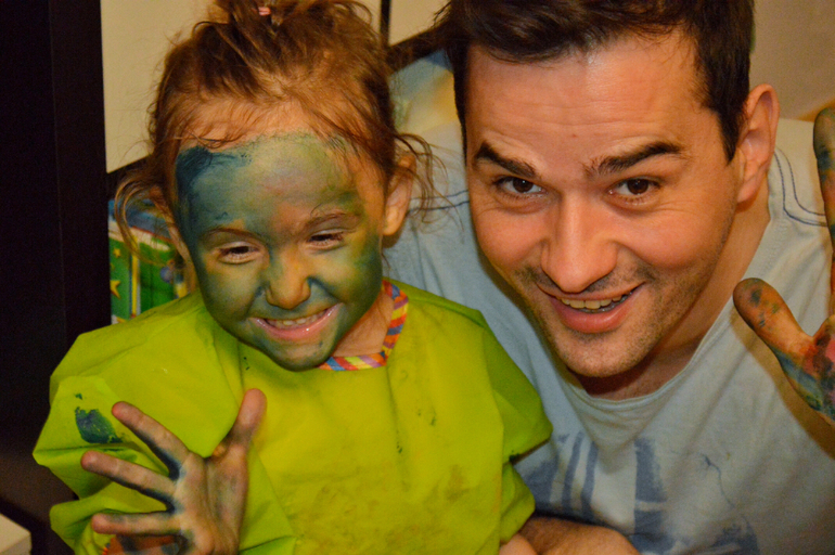 С папами ведь всегда все как-то нестандартно) гуашь, кстати , первый раз была не икеевская. И она отмылась только на второй день.)