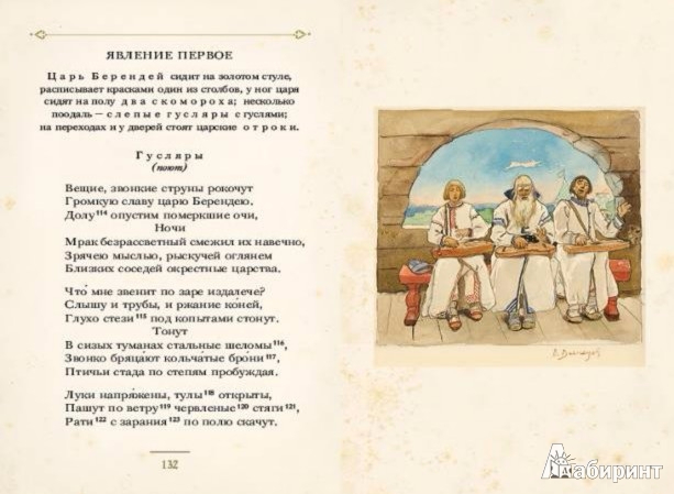 Несколько раз сын посмотрел, по моему мнению, шедевральный м/ф "Снегурочка". Затем прочитали книгу Островского "Снегурочка" с иллюстрациями Васнецова. Иллюстрации в книге здорово похожи на костюмы танцовщиков балета, я была довольна, что всё было в едином стиле - книга и балет.![]()