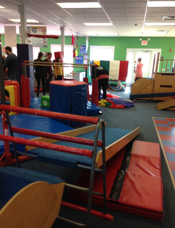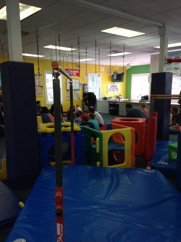 2) спортзал для малышей. Я нашла 2 сети таких спортзалов рядом с домом: The Little Gym и My Gym. Взяла пробные занятия в обоих, интереснее оказался второй, там гораздо больше всяких турникетов для деток, где можно ползать, попрыгать и прочее: горки, лесенки, качельки, лазалки, маты и так далее. Плюс детки такого же возраста, они хоть вместе не играют, но от параллельной игры не меньше пользы. Такие спортзалы помогают развить крупную моторику в достаточно безопасной среде. Вряд ли можно обеспечить дома такое же разнообразие всяких турникетов. Кроме того, это способ первой социализации. Вот несколько фото такого спортзала: