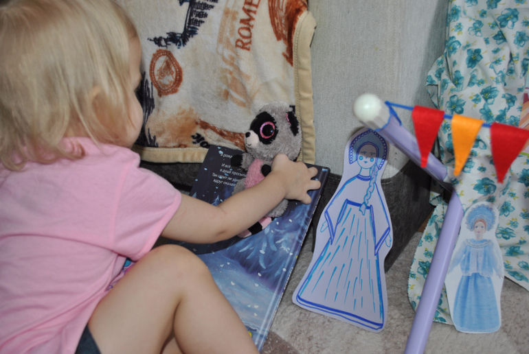 Началось все с того, что я позвала Машулю послушать сказку "Снегурочка". Когда дочитали - внезапно перед нами из книжки выпадает сама героиня. Она слышит музыку (я включила на планшете перед тем, как пошла читать сказку) и интересуется, что же это за звуки..